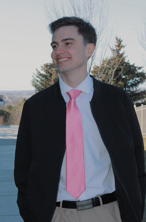 A vibrant pink tie detailed with delicate white florals. Petal Rosé brings a look that feels playful, polished, and timeless.