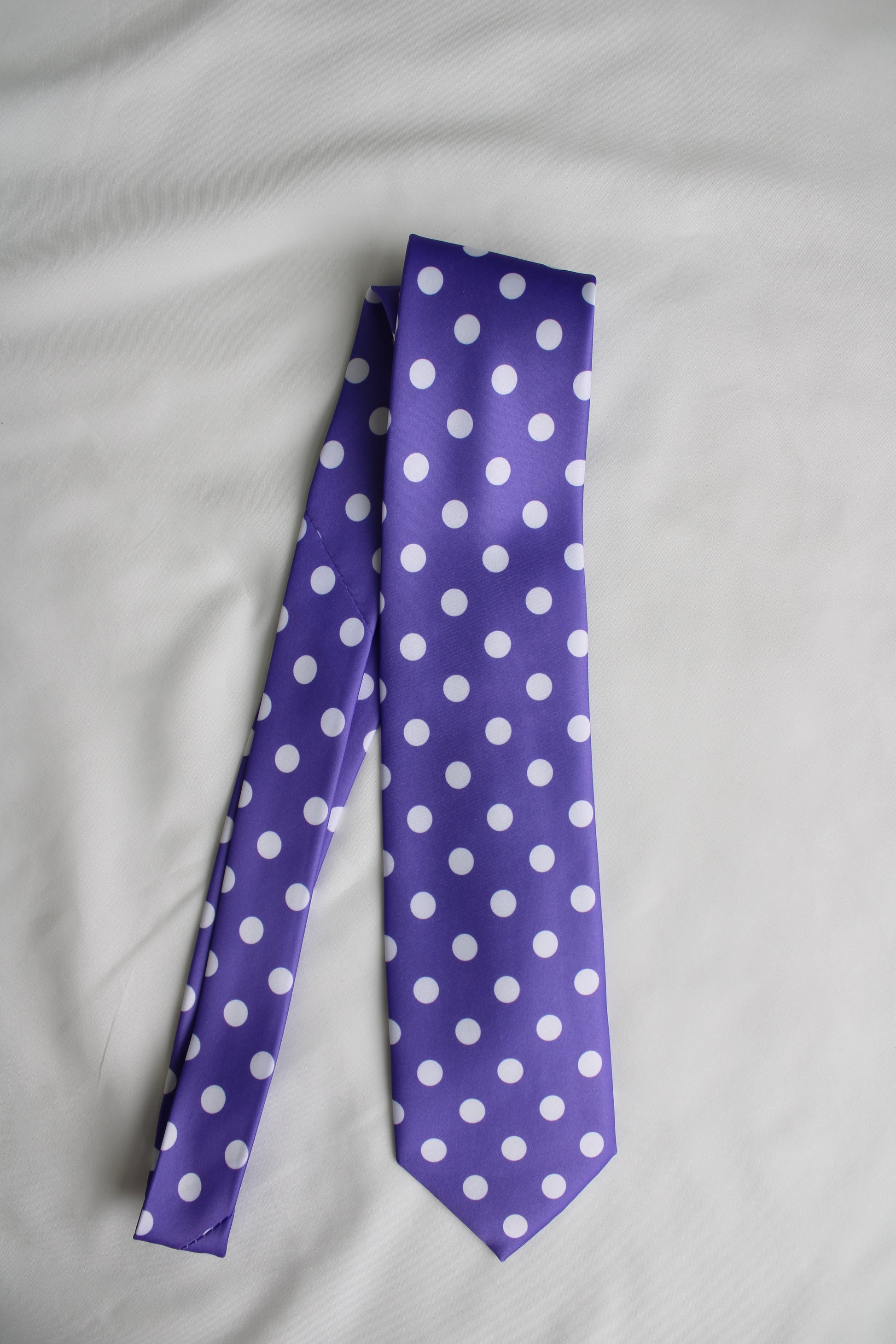 A rich purple tie accented with classic polka dots, designed to balance bold color with clean sophistication.